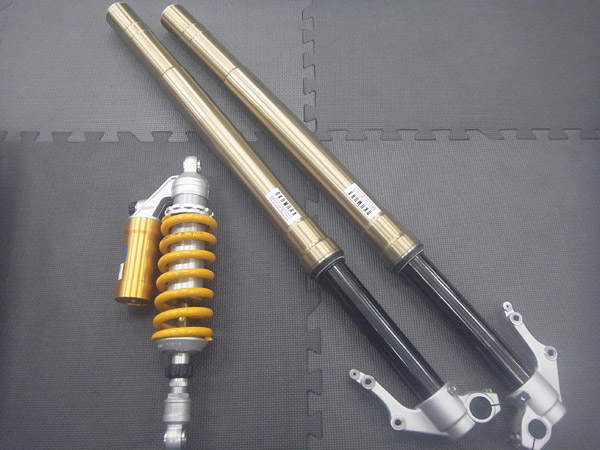 マルゾッキ製インナーパイプ径Φ45倒立フロントフォークとOHLINS製リヤショックです。