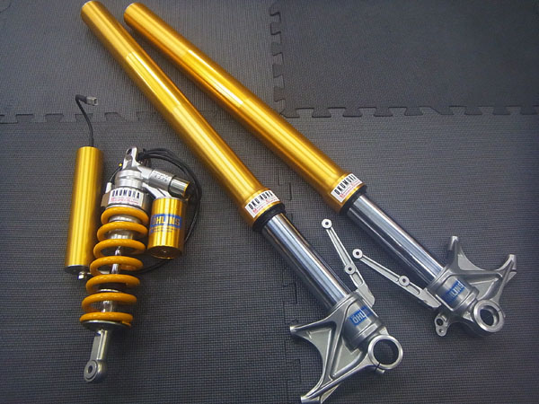 OHLINS製インナーパイプ径Φ48倒立フロントフォークとOHLINSモノショックです。