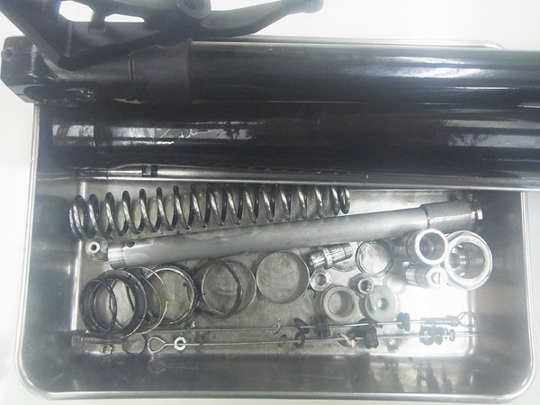ヤマハ モーター ハイドロ リック システム 社製インナーパイプ径Φ43倒立フロントフォークと、ヤマハ モーター ハイドロ リック システム 社製モノショックです。