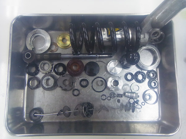 以前に前後サスペンションをMEダンピングチューニングによってセットアップさせていただいたお客さまから、定期的に前後サスペンションのフルメンテナンスをご依頼いただいております。毎日、通勤でかなりの距離を走れており、バイクとのコミュニケーションに長けたマイスターとも言えるベテランライダーのお客さまです。