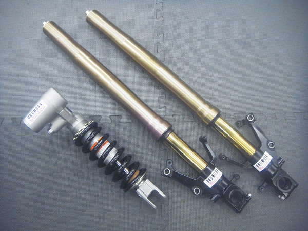 KYB製インナーパイプ径Φ43倒立フロントフォークとKYB製モノショックです。