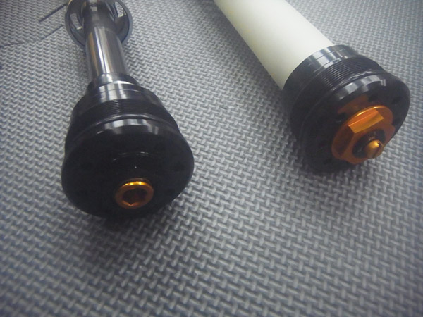 フロントフォークは、スプリングイニシャル(プリロード)の調整と伸び側ダンピングの調整が可能となります。