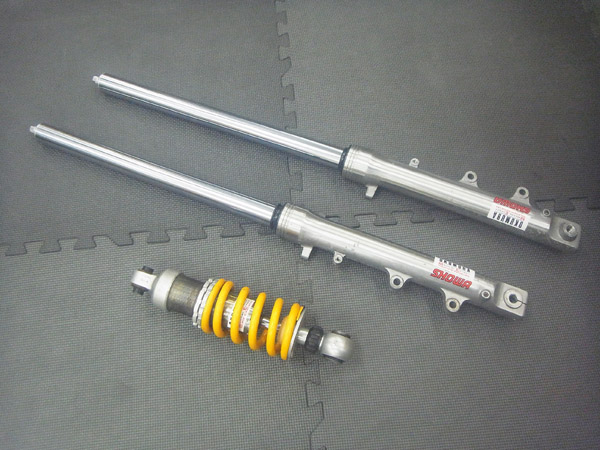 SHOWA製インナーパイプ径Φ35正立フロントフォークとOHLINS製リヤショックです。