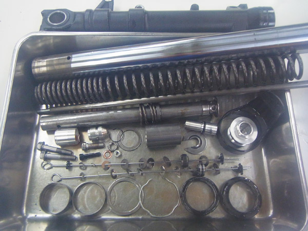 SHOWA製インナーパイプ径Φ43正立フロントフォークとSHOWA製モノショックです。