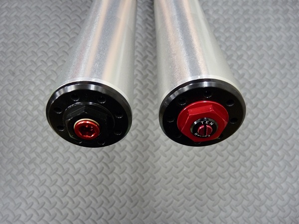 MEインナーカートリッジキット 伸び側ダンピングとスプリングイニシャルのアジャスタ部分です。