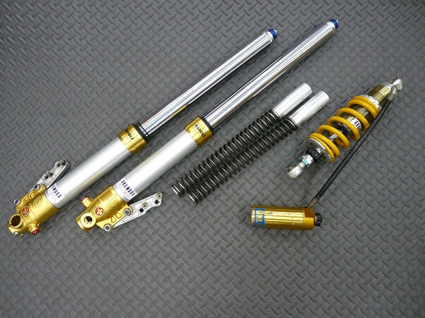 PAIOLI製インナーパイプ径43φ正立フロントフォークとOHLINS製モノショックです。