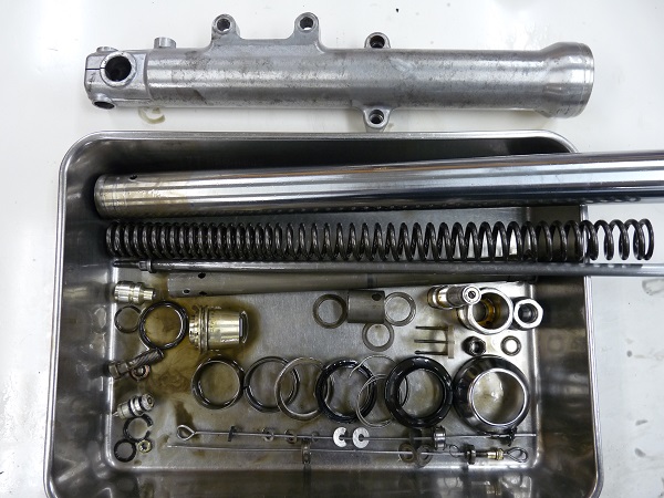 今回はフロントフォークフルメンテナンスのメニューに加えて、MEスーパースポーツスプリングの組み込みを併せてご注文いただきました。