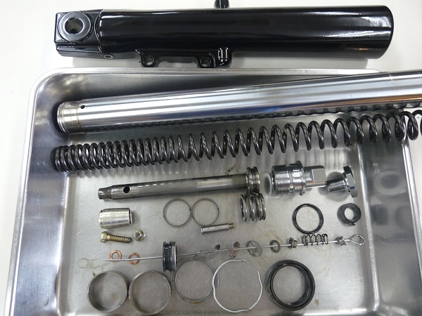 高速ツーリングを楽しまれているお客さまよりハーレーダビットソンツアラーFLTRフロントフォークのセットアップをご依頼いただきました。このモデルは車重が大きくどっしりしているとは言え、ノーマルのサスペンション仕様のままですとライダーの入力に対する挙動が大きく出てしまい、気を遣うライディングになりがちです。MEダンピングチューニングによってフロントフォークをしっかりさせることで余計な挙動を抑えて安定したクルージングを楽しんでいただけます。