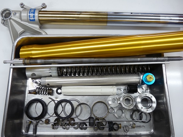 スクーデリアオクムラのOHLINS製 倒立フロントフォーク、正立フロントフォークフルメンテナンスの費用は、税別で¥