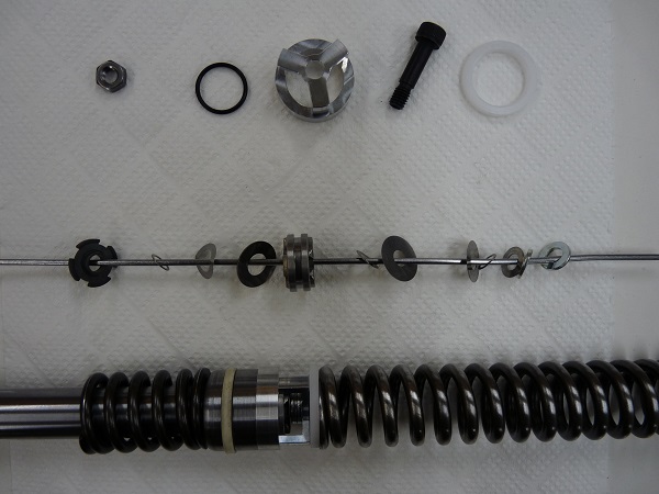 こちらがフロントフォークに組み込んだ「コントロールバルブ」