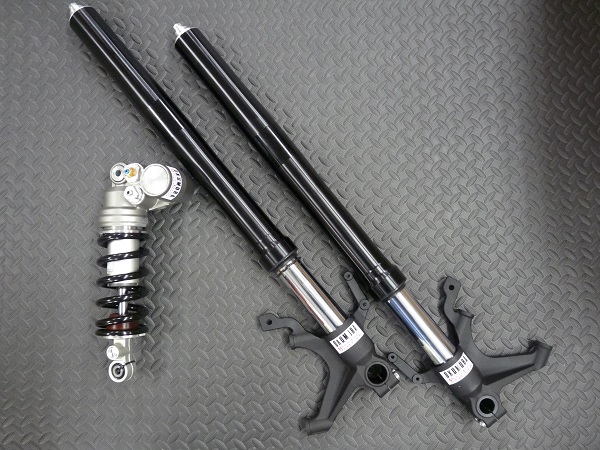 ヤマハモーターハイドリックシステム社製インナーパイプ径φ43倒立フロントフォークと、同じくヤマハモーターハイドリックシステム社製モノショックです。