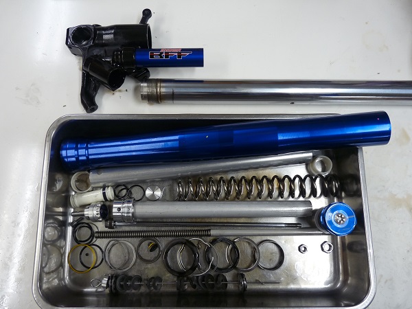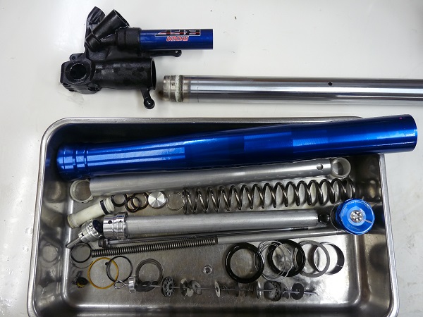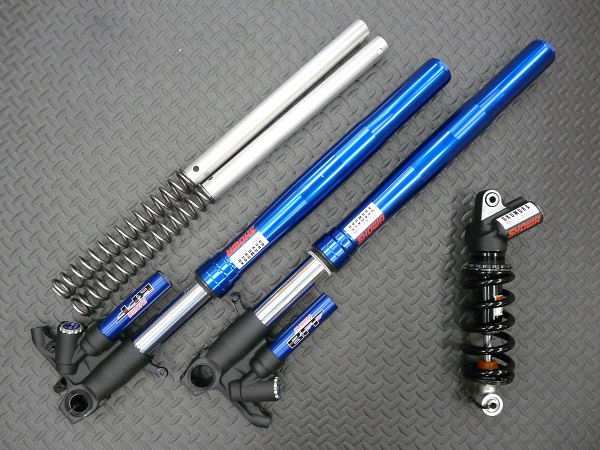 SHOWA製インナーパイプ径φ43バランスフリー倒立フロントフォークと、SHOWAモノリヤショックです。