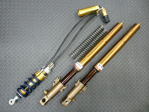 SHOWA製インナーパイプ径φ41倒立フロントフォークとOHLINS製リヤモノショックです。