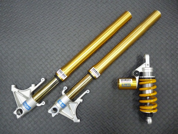 OHLINS製インナーパイプ径φ43倒立フロントフォークと、OHLINS製モノリヤショックです。