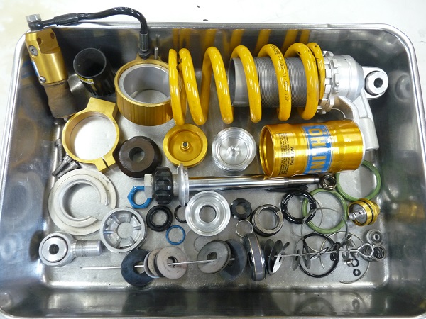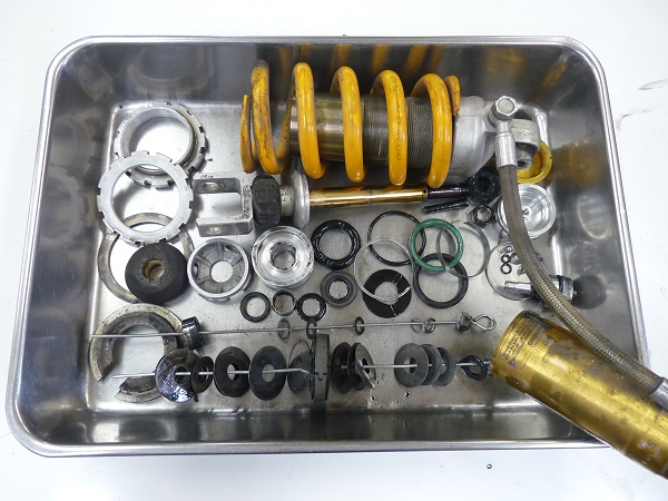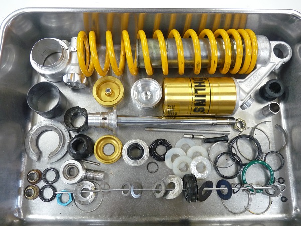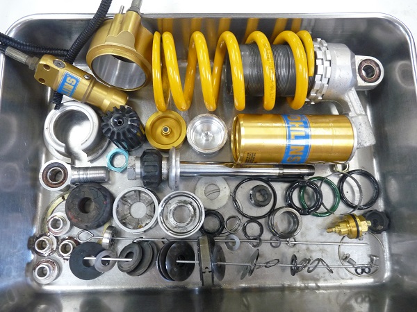 OHLINSサスペンションのフルメンテナンスやMEダンピングチューニングのご依頼をたいへん多くいただいております。それほどOHLINSサスペンションをご購入されたお客さまは、サスペンションに興味をお持ちでサスペンションに気を遣っていらっしゃる方が多いことなのだと思います。ノーマルサスペンションからOHLINSに交換したときの感動は大きかったと思いますが、年月が経ち走行距離も伸びてサスペンションの性能が少しずつ低下していてもなかなか気付かないもの。「オイルが漏れていないからまだ大丈夫」と思わずに定期的なメンテナンスを行うことがバイクライフを安全に楽しむために重要です。メンテナンスのサイクルは走らせるフィールドによっても異なりますが、おおまかな目安として2年1万キロを推奨しています。実際は2年1万キロ後にサスペンションフルメンテナンス(オーバーホール)を施すと、ビフォア、アフターで性能の変化に驚くほどです。OHLINS製品に限らず、ノーマルサスペンションや他のブランドサスペンションも定期的なメンテナンスをスクーデリアオクムラにお任せ下さい。きっちりとした仕事をお約束します。スクーデリアオクムラは、6ヶ月間のオイル漏れ保証をお付けしております。