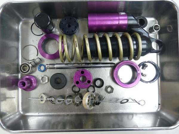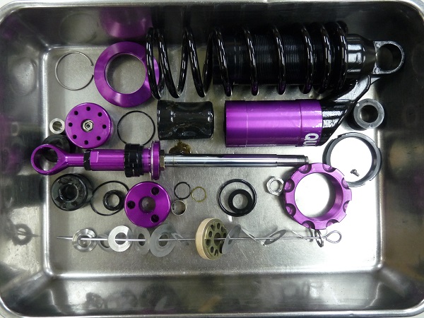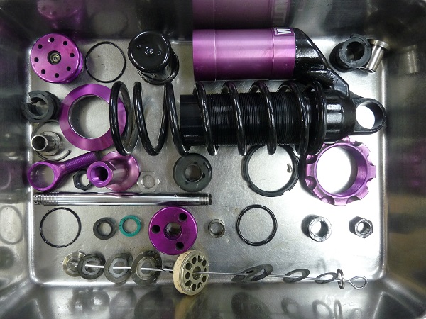 QUANTUMリヤショックのフルメンテナンスのご依頼はとても多くいただいております。使い込んで性能が低下してしまったサスペンションに正しいメンテナンスを施すことで、新品の状態にリ・フレッシュすることができます。フワフワ感や、突き上げ感を感じたら、それはサスペンションが劣化している状態です。QUANTUMサスペンションのフルメンテナンスはスクーデリアオクムラにお任せ下さい。