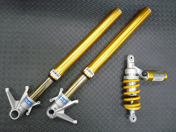 OHLINS製インナーパイプ径φ43倒立フロントフォークと、OHLINS製モノリヤショックです。