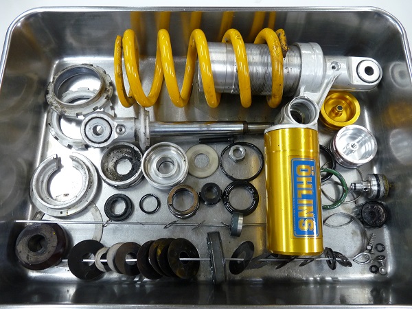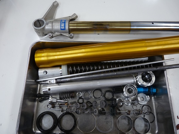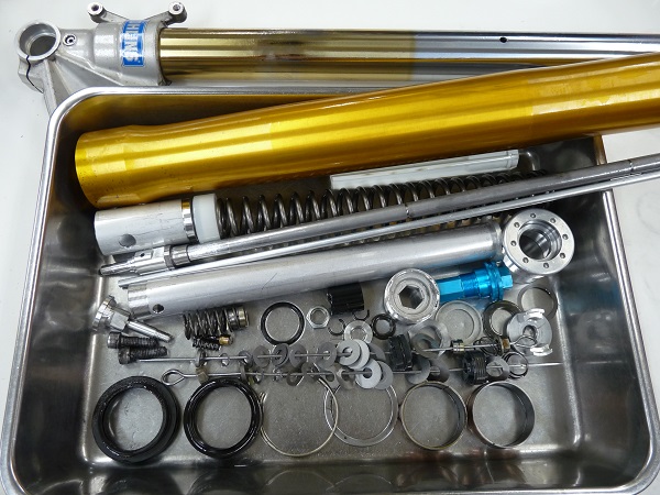 今回は純正装着された前後のOHLINSサスペンションのフルメンテナンスをお任せいただきました。OHLINSフロントフォークと、OHLINSモノショックの前後併せたフルメンテナンスの費用は、¥76,744-(税込み)です。この中には、基本交換パーツ、オイル、パーツ超音波洗浄、計測、研磨を含みます。是非、ご検討下さい。(サスペンションの脱着費用は含んでおりません。サスペンション単体での金額となります。)