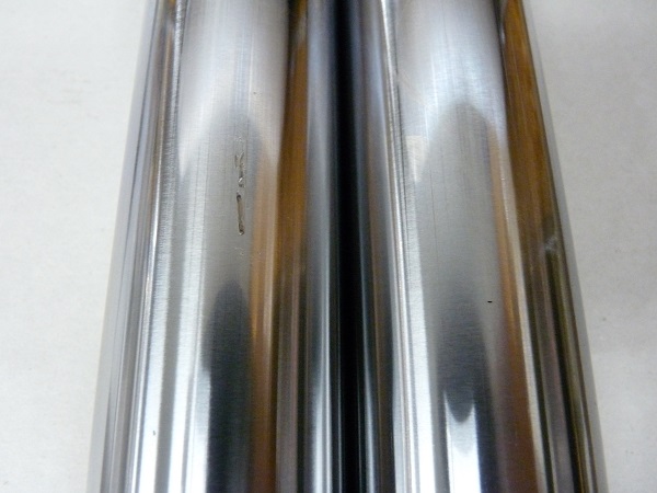 アルミフレームとなり新しくなったXBシリーズ。「Xブレードフレーム」と名付けられた極太アルミツインスパーフレームに、ハーレーダビッドソンがBuell専用に造った空冷Vツイン984ccエンジンを搭載したスポーツモデルです。設計したエリック・ビューエルさんは、フレームをガソリンタンクと兼用とし、また、ドライサンプのエンジンオイルタンクをスイングアームと兼ねるというまさに奇才ぶりを発揮して、マスの集中、ガソリン重量のハンドリングへの影響の軽減、ホイールベースの短縮化に成功しました。ハーレーエンジンを搭載したネイキッドモデルが、これほどまでにレーシーなハンドリングであることは乗った人にしか解らないことですね。今回は前後サスペンションのフルメンテナンスをお任せいただきました。走らせて楽しいBuellをより楽しく走らせるために、サスペンションをベストなコンディションに保つことはとても大切です。今回は錆が発生していたフロントフォークインナーパイプを再メッキ加工によって再生して組み上げました。