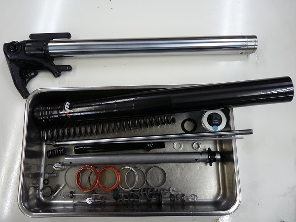今回はWP電子制御フロントフォークのフルメンテナンスをご依頼いただきました。より快適にロングツーリングを楽しむためにサスペンションをベストなコンディションで維持したいものです。また、このWP電子制御のフロントフォークは、フルメンテナンスのみならず、MEダンピングチューニングによるセットアップも可能です。是非、ご相談下さい。