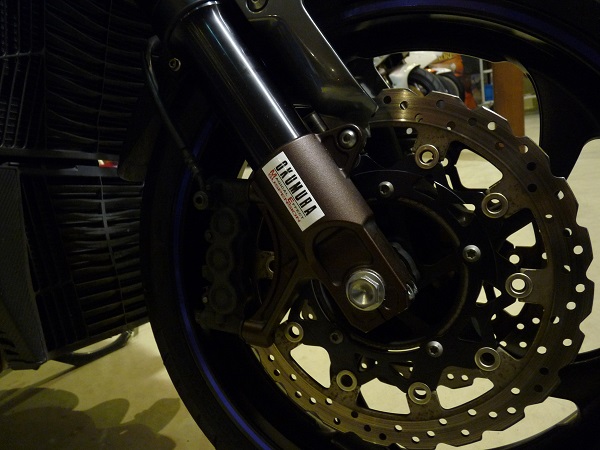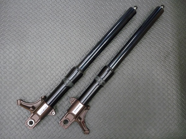 ヤマハモーターハイドロリックシステム社製インナーパイプ径φ52正立フロントフォークと、ヤマハモーターハイドロリックシステム社製モノリヤショックです。