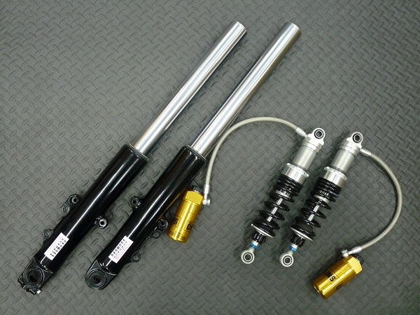 SHOWA製インナーパイプ径φ49正立フロントフォークと、OHLINS製ツインリヤショックです。