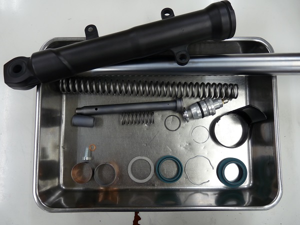 Ninja250(2015model)フロントフォークのフルメンテナンス、リヤショックのMEダンピングチューニングによるセットアップが完了いたしました。